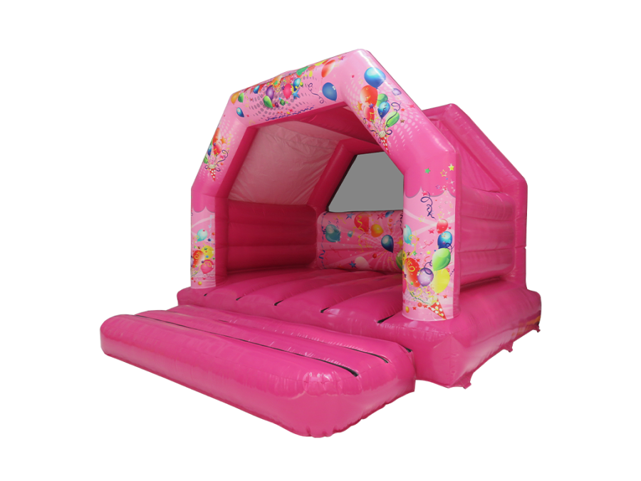 Our Pink Party Castle is an A-Frame design with open front and has a roof, this castle becomes the centre of attention at any Event or Party.