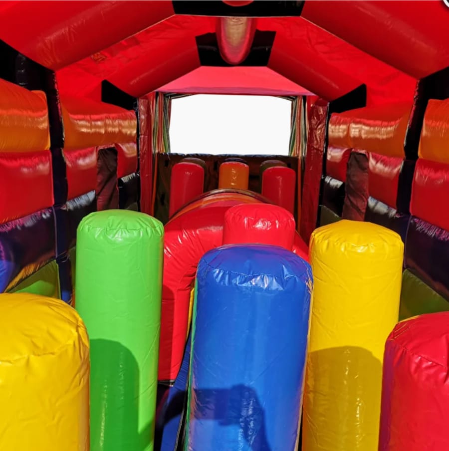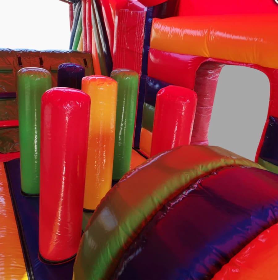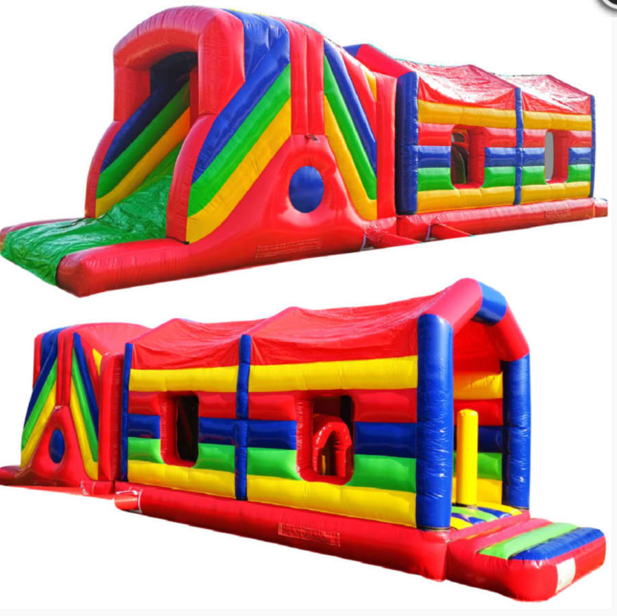Hire East Lothian Bouncy Castles 2 Part 50 Ft Inflatable Obstacle Assault Course and you'll find it makes a fantastic addition to any Fun Day, Event or Celebration as everyone of all ages can take part in the mad dash or race to victory. Whether you're young or old, big or small, you're sure to have some fun as you race through our Inflatable assault course; running, jumping, bashing and climbing your way to the finish line.